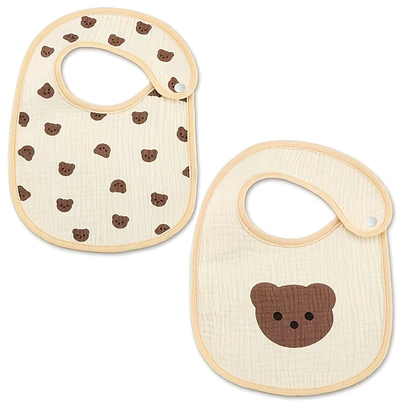 2pcs Newborn Baby Cotton Gauze Bibs Waterproof Infant Boys Girls Burp Cloths Printing Scarf Toddler Saliva Towel Feeding Stuff