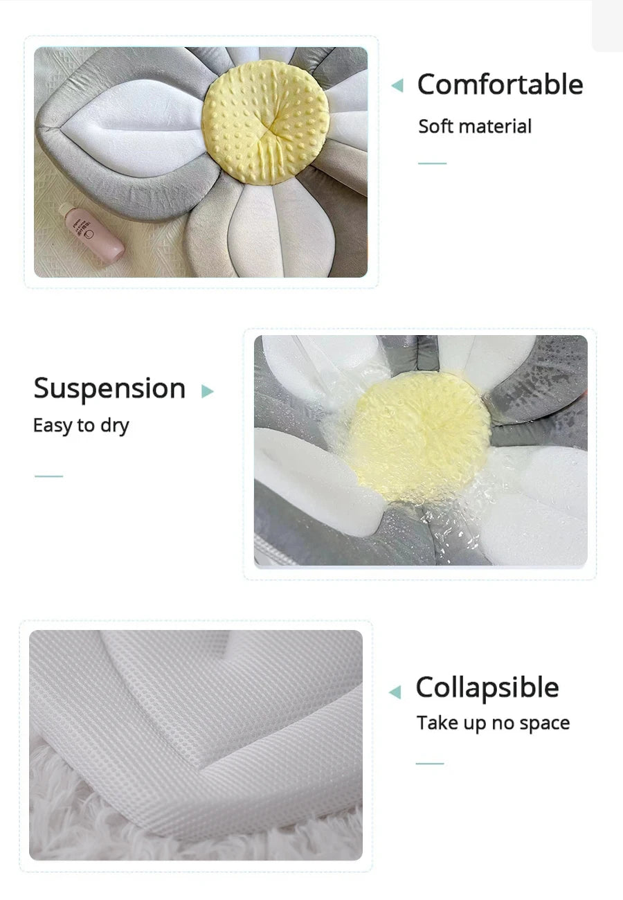 Baby bath mat can lie down fold newborn creative flower bath mat baby bath lotus safety cushion