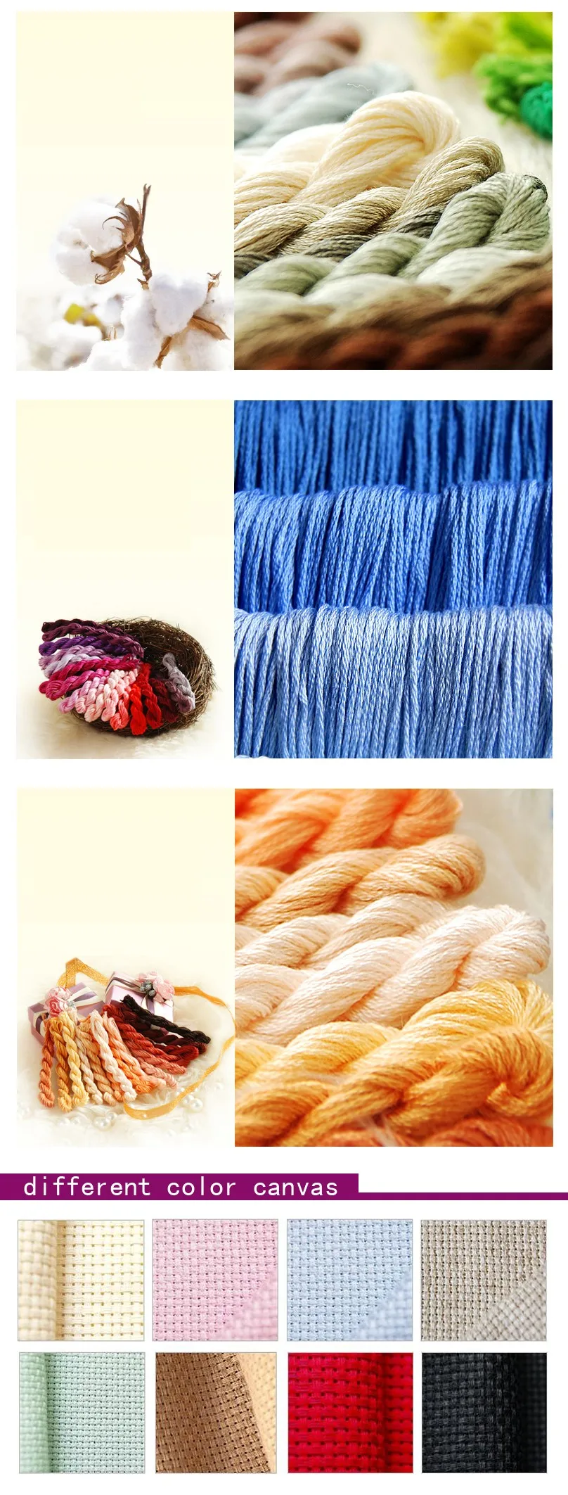 kit include:threads,needles,drawings,canvas