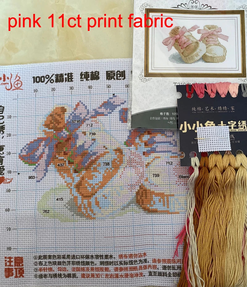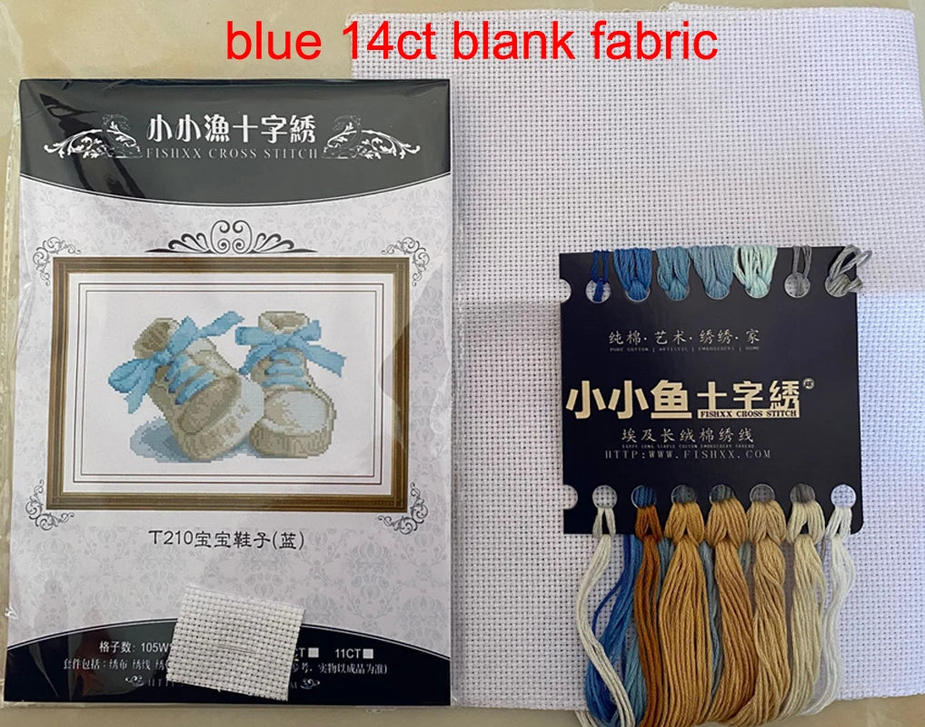 Baby Boots Birth 14CT for Embroidery Cartoon Boy Home Decor Needlework Counted & Stamped DIY Cross Stitch Kits