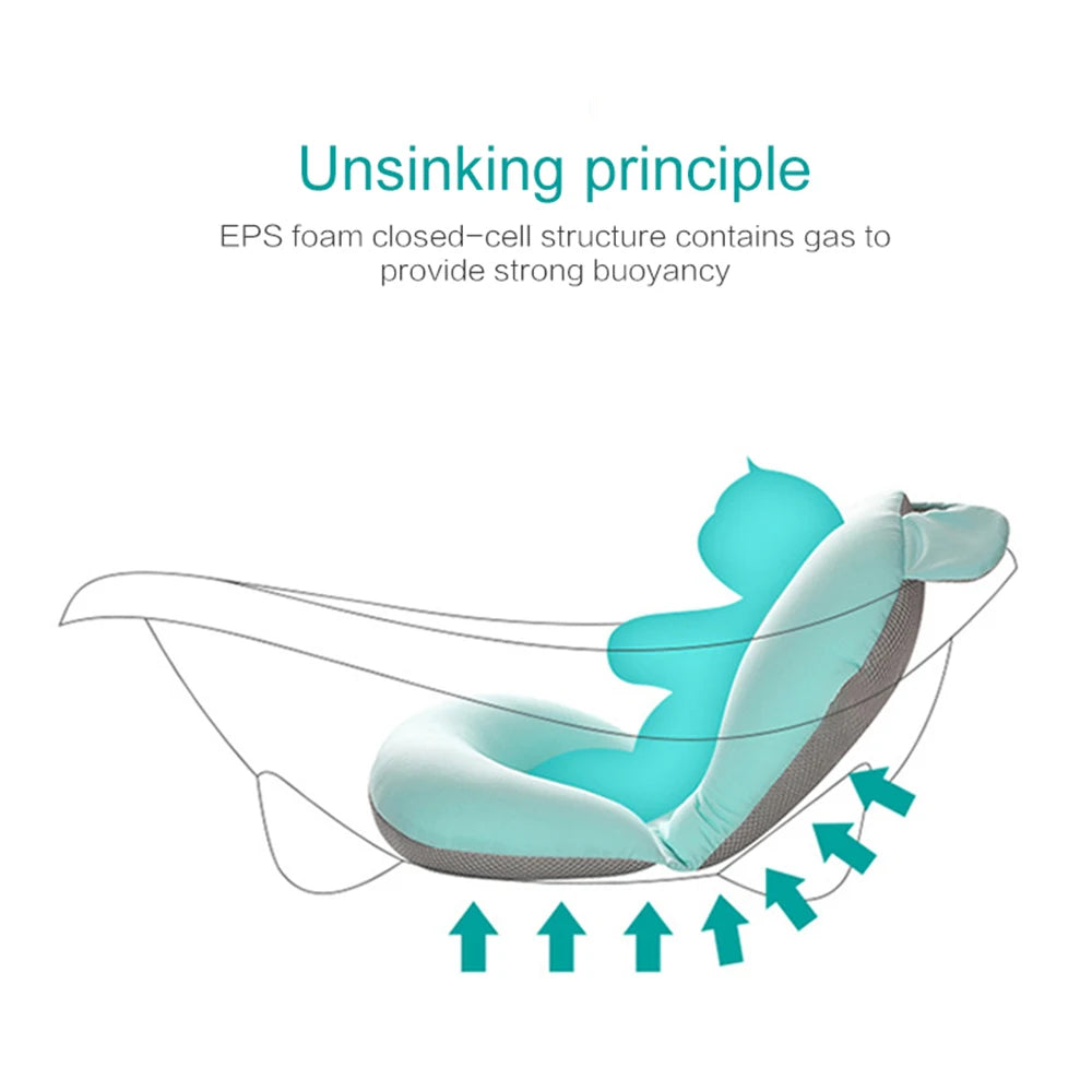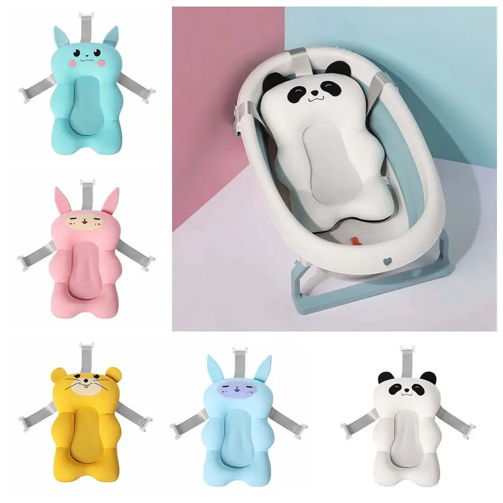Baby Shower Mat Bath Tub Pad Non-Slip Bathtub Seat Support Mat Newborn Safety Security Bath Support Cushion Foldable Soft Pillow