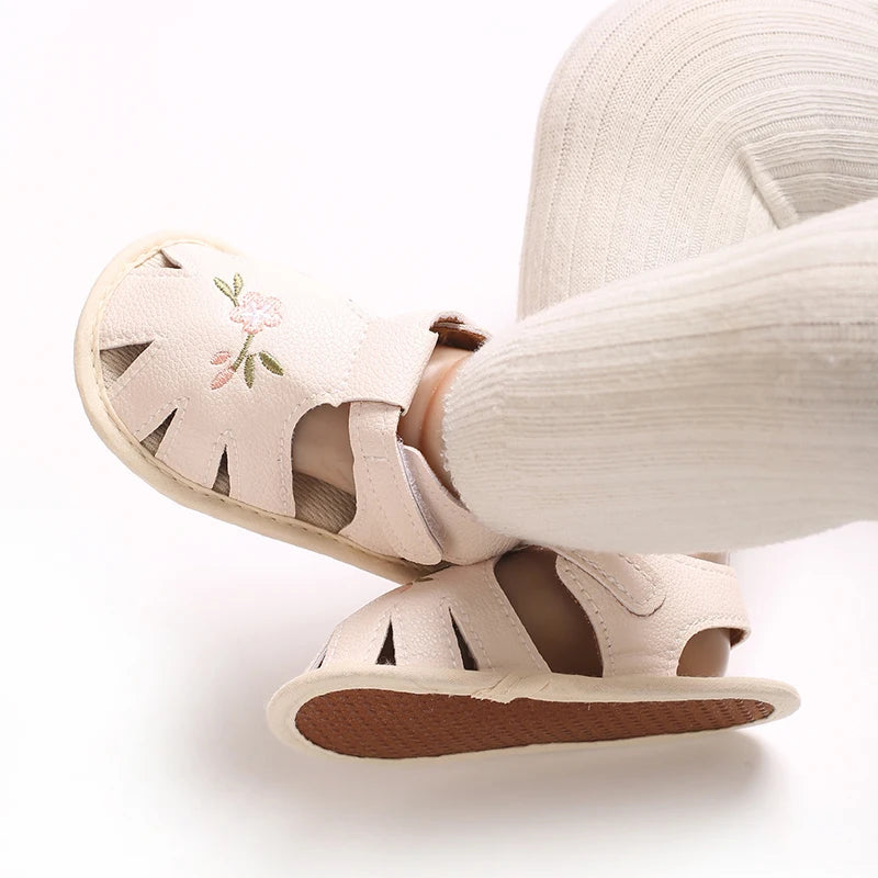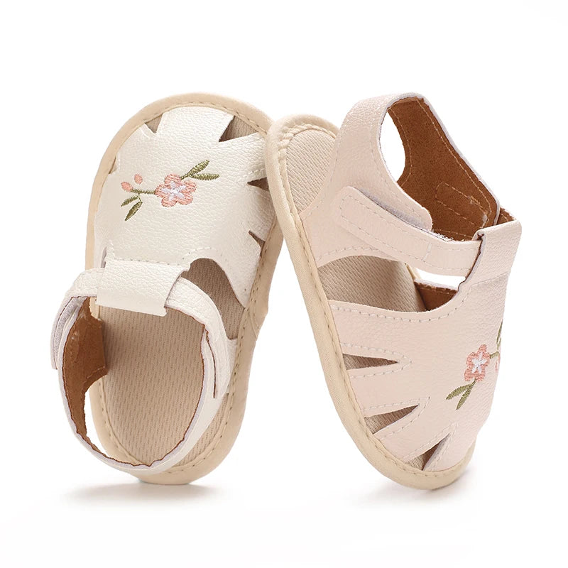 Floral Embroidered Baby Walker Sandals - Soft Sole Breathable & Non-Slip Perfect for Daily Wear & Vacation Spring/Summer