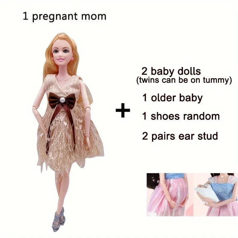[Package include]: 1 doll +2 babies + 1 highheel shoes (random style)+ 2 earstud