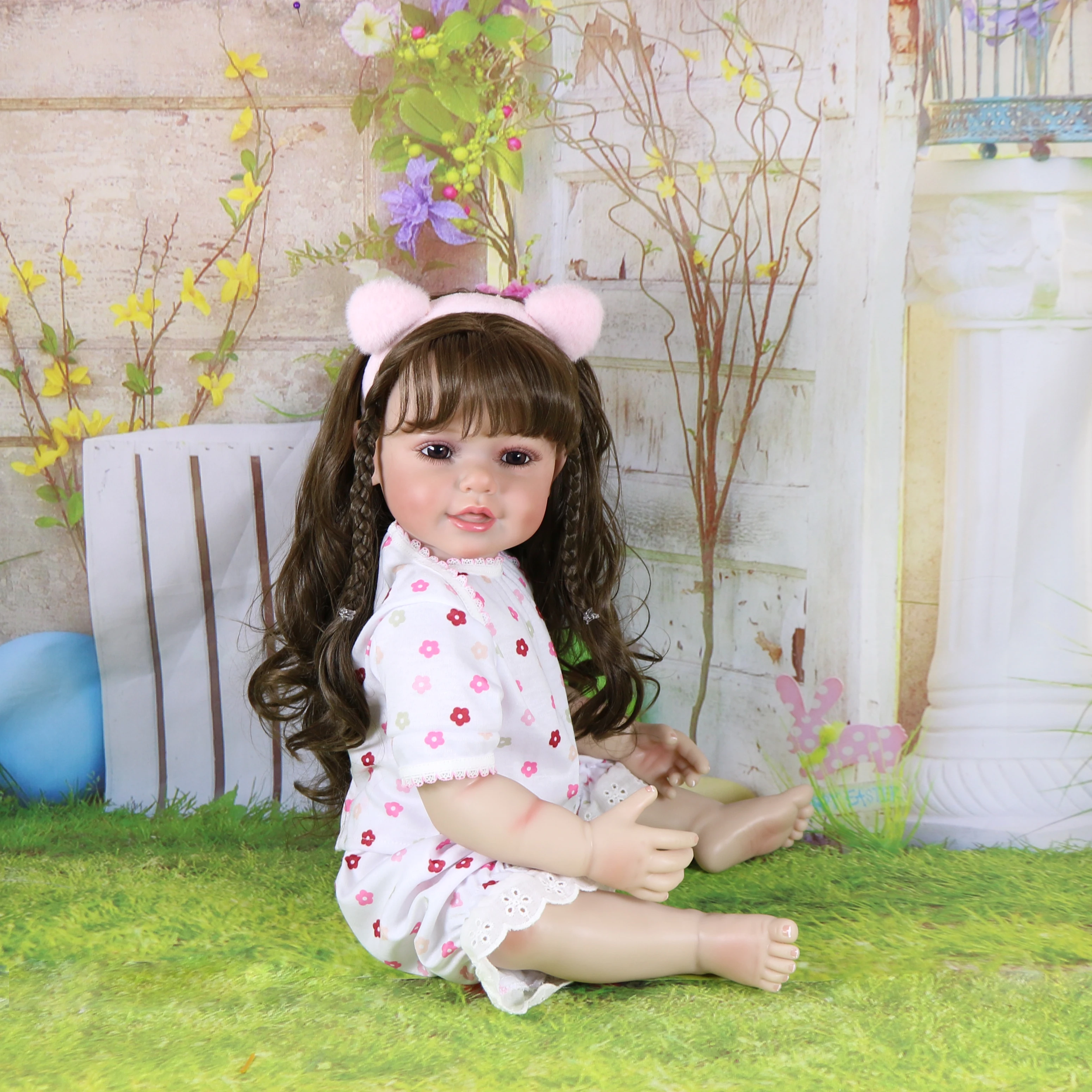 Realistic Reborn Baby Doll Gift Set-22 inch doll Rooted Long hair / Brown eyes/Sweet face/Light Skin Tone , Birthday Gift